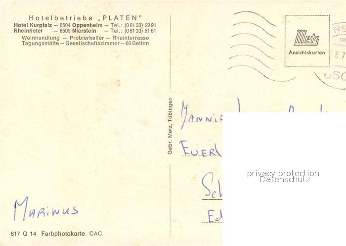73641108 alte Postkarte Oppenheim Hotel Kurpfalz und Rheinhotel Nierstein postalisch gelaufen Erhaltung siehe scans [WerneD78] KatCode: 11110007339049