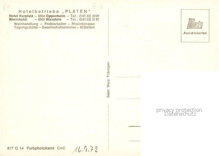 73845604 Oppenheim Hotel Kurpfalz und Rheinhotel Nierstein postalisch nicht gelaufen Erhaltung siehe scans [FriedD77] KatCode: 11110007339049