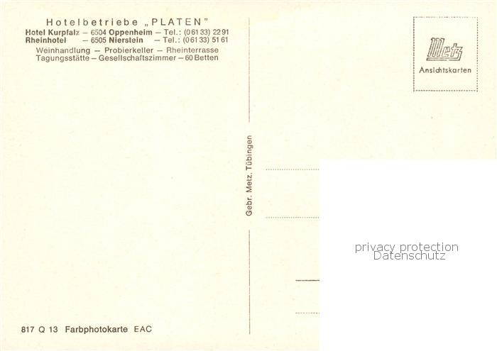73844967 Oppenheim Hotelbetriebe Platen Hotel Kurplatz Rheinhotel Nierstein postalisch nicht gelaufen Erhaltung siehe scans [WerneD78] KatCode: 11110007339049