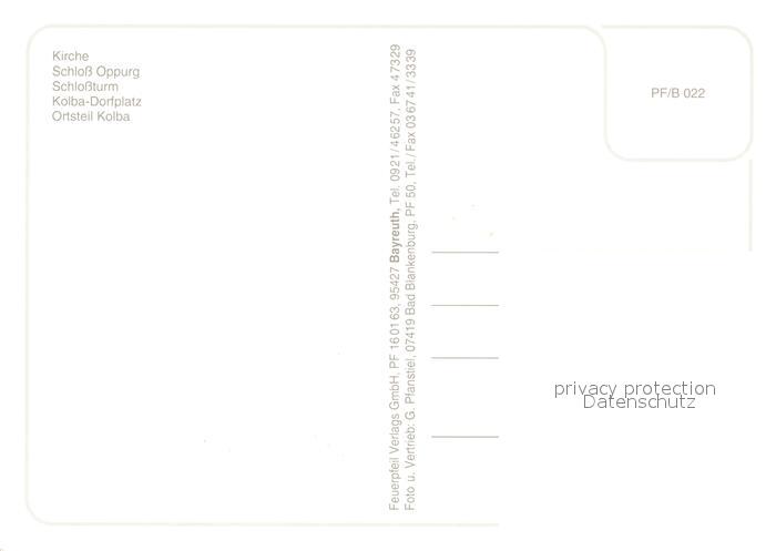 73227313 Oppurg Schloss Schlossturm Kolba-Dorfplatz postalisch nicht gelaufen Erhaltung siehe scans [LiesaD40] KatCode: 11110016075077