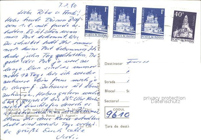 old postcard Oradea Fluss Crisul Repede Bruecke Hotel Parcul 23. August postalisch gelaufen Erhaltung siehe scans