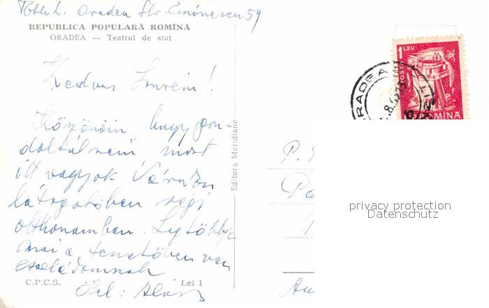 old postcard Oradea Teatrul de stat Theater Denkmal postalisch gelaufen Erhaltung siehe scans [FriedD77]