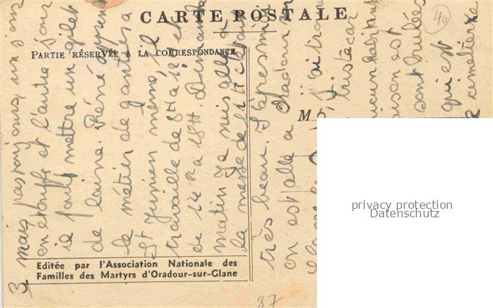 14116062 Oradour-sur-Glane Rochechouart 87 Haute-Vienne Dans le Bourg Route du Cimetière les Martyrs d’Oradour sur Glane Massaker 2. Weltkrieg postalisch nicht gelaufen Erhaltung siehe scans [FriedD77] Frie Katcode 11170087387110