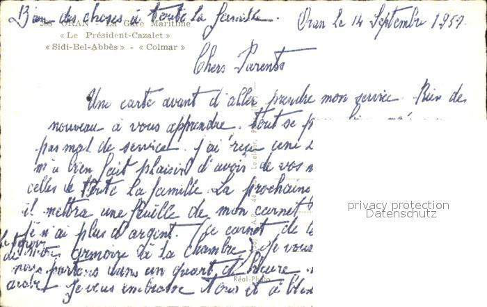 Oran Algerie La Gare Maritime Le President Caalet Sidi Bel Abbes postalisch nicht gelaufen Erhaltung siehe scans