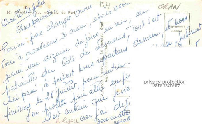74132546 old postcard ORAN Algerie Panorama Hafen postalisch gelaufen Erhaltung siehe scans [IrynaD87] KatCode: 18030