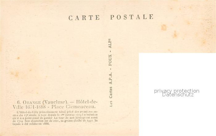 13618664 Orange Vaucluse Hotel de Ville postalisch nicht gelaufen Erhaltung siehe scans [WerneD78] Wern Katcode 11170084284087
