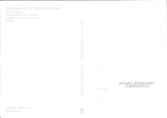 72369919 Oranienbaum Schlosspark Orangenbaeumchen am Markt Gaststaette Goldener Hirsch postalisch nicht gelaufen Erhaltung siehe scans KatCode: 11110015091240