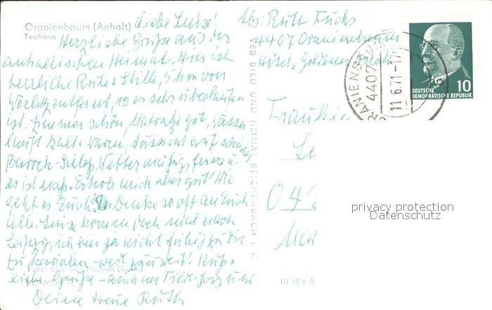 72077966 alte Postkarte Oranienbaum Teehaus postalisch gelaufen KatCode: 11110015091240