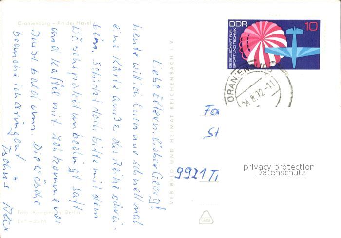 72328190 alte Postkarte Oranienburg Partie an der Havel Schiff postalisch gelaufen Erhaltung siehe scans KatCode: 11110012065256