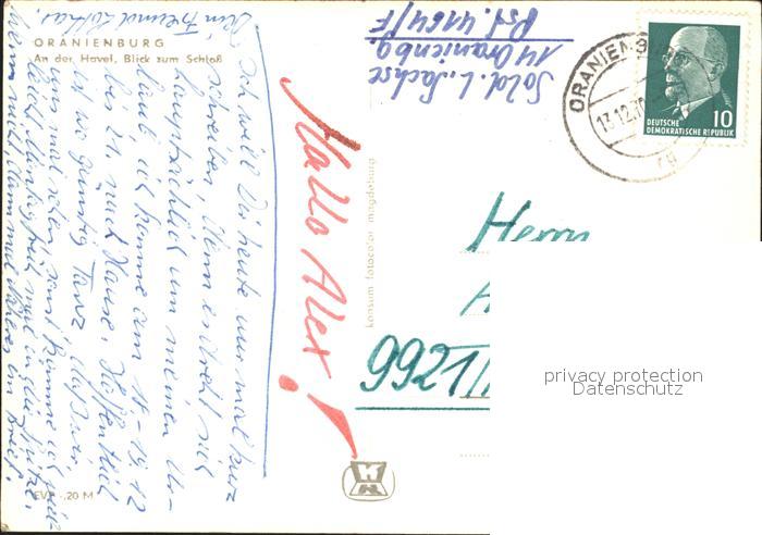 72328193 alte Postkarte Oranienburg Partie an der Havel Schloss postalisch gelaufen Erhaltung siehe scans KatCode: 11110012065256