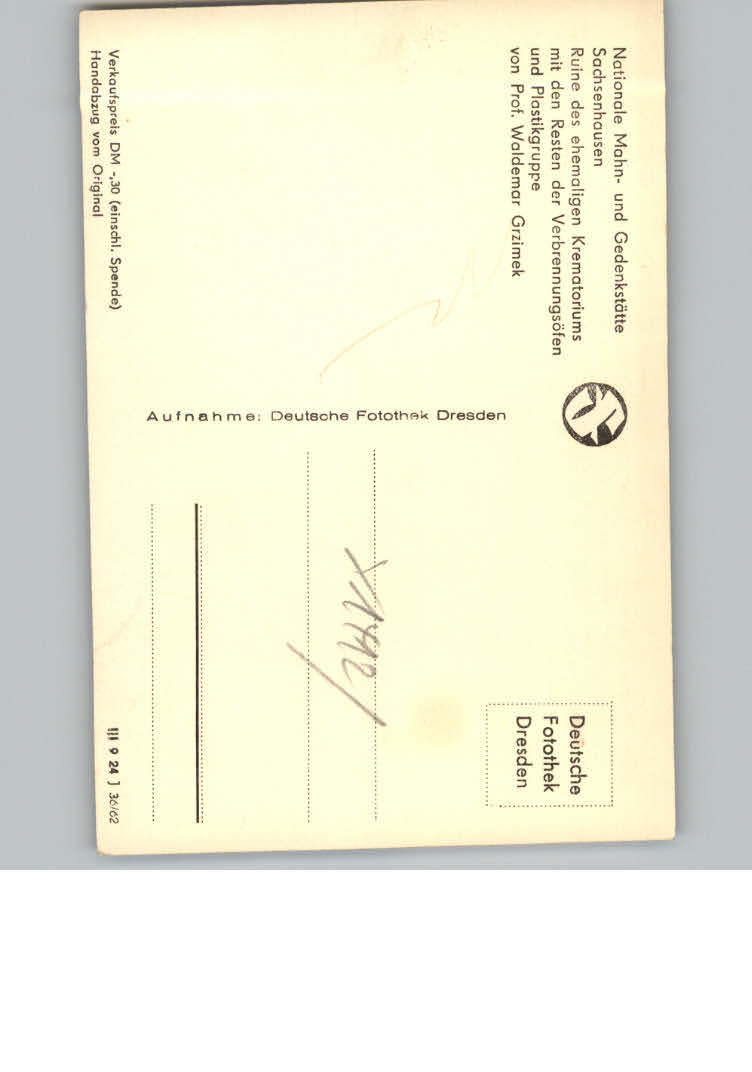 31177932 Oranienburg Sachsenhausen postalisch nicht gelaufen KatCode: 11110012065256