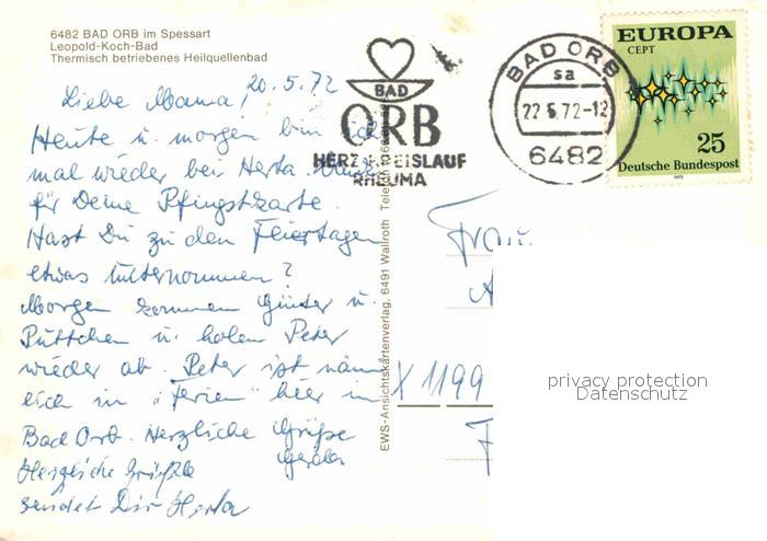 72846500 alte Postkarte Orb Bad Heilquellenbad postalisch gelaufen Erhaltung siehe scans [KathaD81] KatCode: 11110006435001