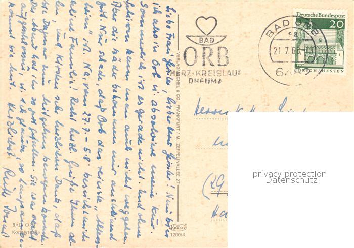 73128917 alte Postkarte Orb Bad Konzerthalle postalisch gelaufen Erhaltung siehe scans [KathaD81] KatCode: 11110006435001