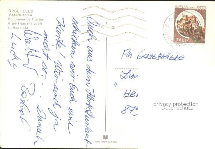 old postcard Orbetello Fliegeraufnahme postalisch gelaufen Erhaltung siehe scans