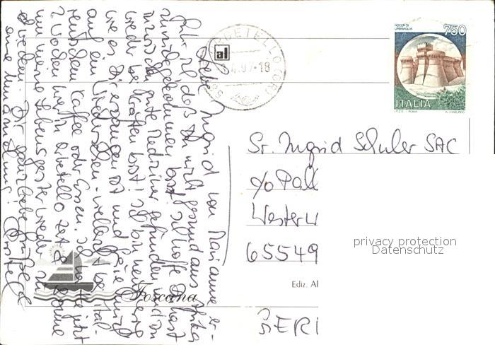 old postcard Orbetello Fliegeraufnahme postalisch gelaufen Erhaltung siehe scans