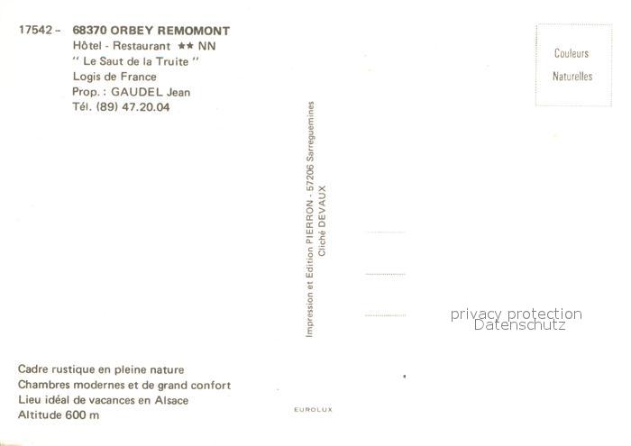 12934770 Orbey Haut Rhin Hotel Le Saut de la Truite postalisch nicht gelaufen Erhaltung siehe scans [NatalD47] KatCode: 11170068568249