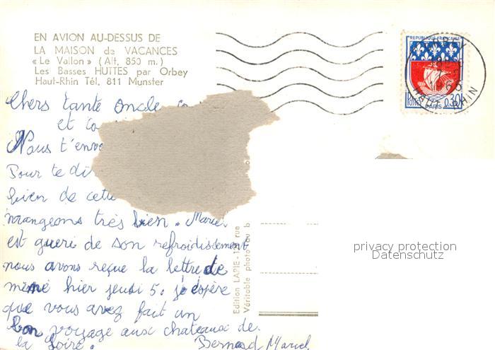13608570 carte postale Orbey Haut Rhin Maison de Vacances Le Vallon vue aérienne postalisch gelaufen Erhaltung siehe scans [FriedD77] KatCode: 11170068568249