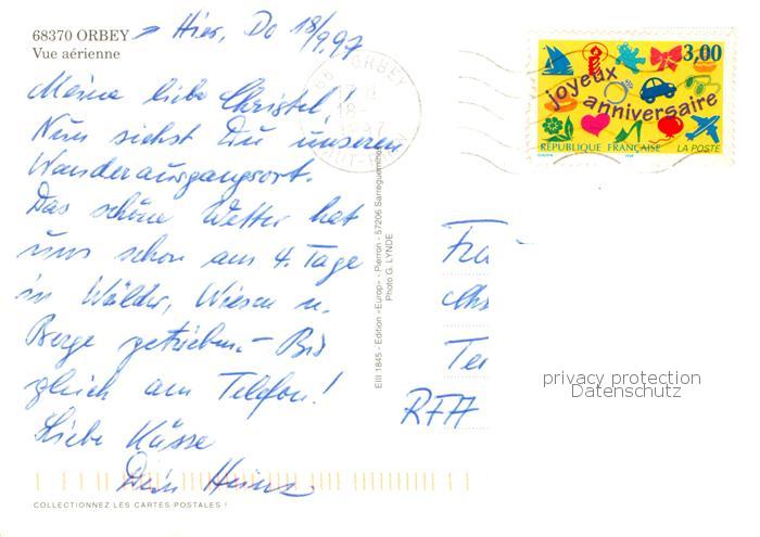 13834790 Orbey Haut Rhin Vue aerienne postalisch gelaufen Erhaltung siehe scans [WerneD78] carte postale Wern Katcode 11170068568249