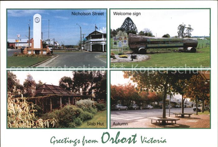 Orbost Nicholson Street Welcome sign Autumn Slab Hut postalisch nicht gelaufen Erhaltung siehe scans