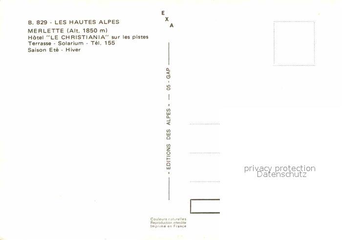 12895160 Orcieres Hautes Alpes Hotel Le Christiania postalisch nicht gelaufen Erhaltung siehe scans [AndreD76] KatCode: 11170005205096