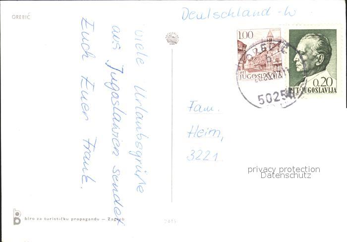 old postcard Orebic Fliegeraufnahme postalisch gelaufen Erhaltung siehe scans