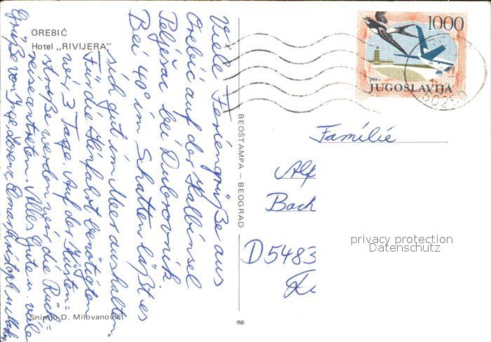 old postcard Orebic Hotel Rivijera Restaurant Strand Panorama postalisch gelaufen Erhaltung siehe scans