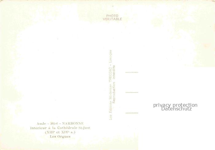 74012292 Orgel Kirchenorgel Organ Orgue Aude Narbonne Interieur a la Cathedrale St Just postalisch nicht gelaufen Erhaltung siehe scans [IrynaD87] KatCode: 22560000002200