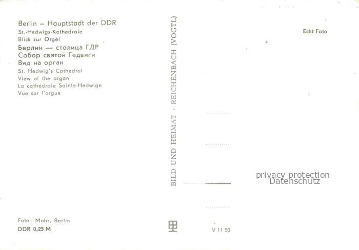 74012287 Orgel Kirchenorgel Organ Orgue Berlin DDR St. Hedwigs Kathedrale postalisch nicht gelaufen Erhaltung siehe scans [IrynaD87] KatCode: 22560000002200