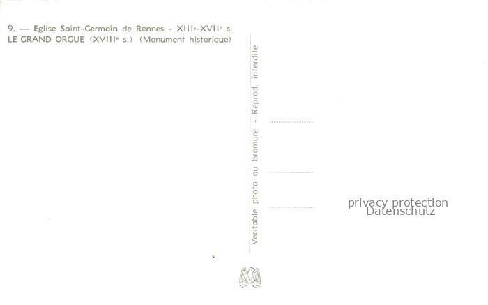 74011611 Orgel Kirchenorgel Organ Orgue Eglise Saint Germain de Rennes postalisch nicht gelaufen Erhaltung siehe scans [IrynaD87] KatCode: 22560000002200