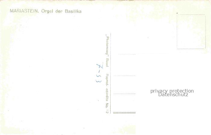 74011602 Orgel Kirchenorgel Organ Orgue Mariastein postalisch nicht gelaufen Erhaltung siehe scans [IrynaD87] KatCode: 22560000002200