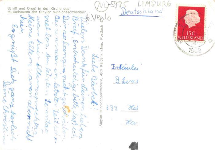 74012541 alte Postkarte Orgel Kirchenorgel Organ Orgue Mutterhauses de Steyler Missionsschwestern Limburg Niederlande postalisch gelaufen Erhaltung siehe scans [SanaeD93] KatCode: 22560000002200