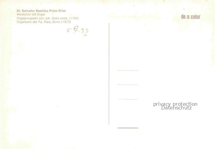 74155087 Orgel Kirchenorgel Organ Orgue St. Salvator Basilika Pruem Eifel postalisch nicht gelaufen Erhaltung siehe scans [SanaeD93] KatCode: 22560000002200