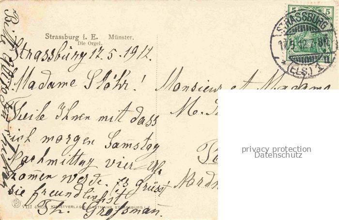 74020623 alte Postkarte Orgel Kirchenorgel Organ Orgue Strassburg i.E. Muenster postalisch gelaufen Erhaltung siehe scans [IrynaD87] KatCode: 22560000002200
