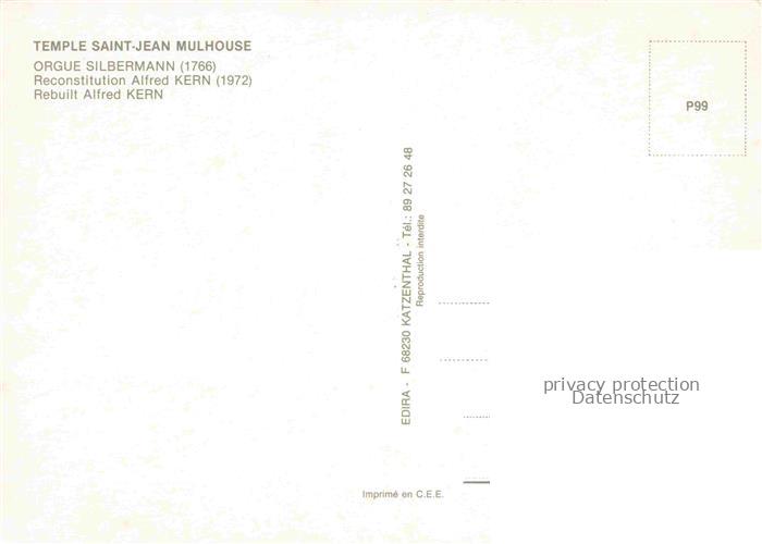 74050542 Orgel Kirchenorgel Organ Orgue Temple St. Jean Mulhouse postalisch nicht gelaufen Erhaltung siehe scans [SanaeD93] KatCode: 22560000002200