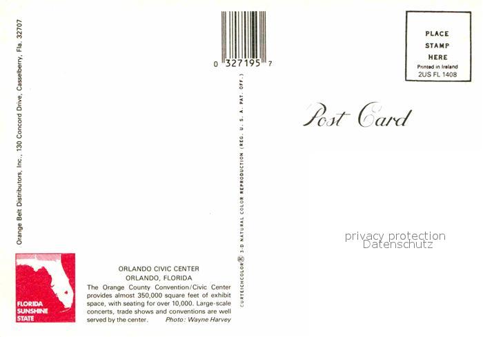 72708372 Orlando Florida Civic Center postalisch nicht gelaufen Erhaltung siehe scans [AndreD76] KatCode: 14140110000000