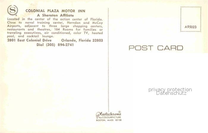 72762762 Orlando Florida Colonial Plaza Motor Inn Sheraton Hotel Map Landkarte postalisch nicht gelaufen Erhaltung siehe scans [FriedD77] KatCode: 14140110000000
