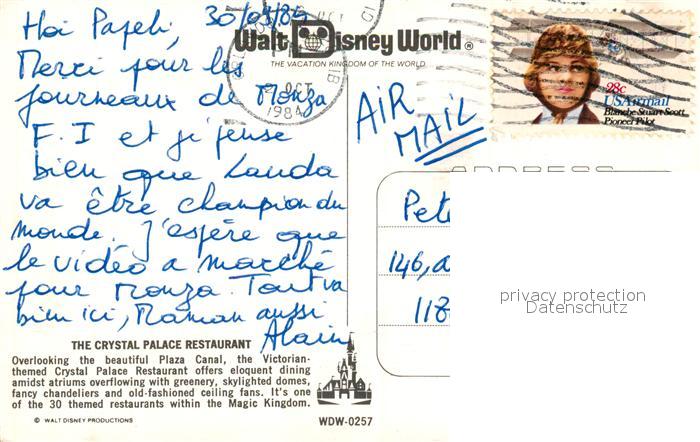 73127743 old postcard Orlando Florida Crystal Palace Restaurant postalisch gelaufen Erhaltung siehe scans [KathaD81] KatCode: 14140110000000