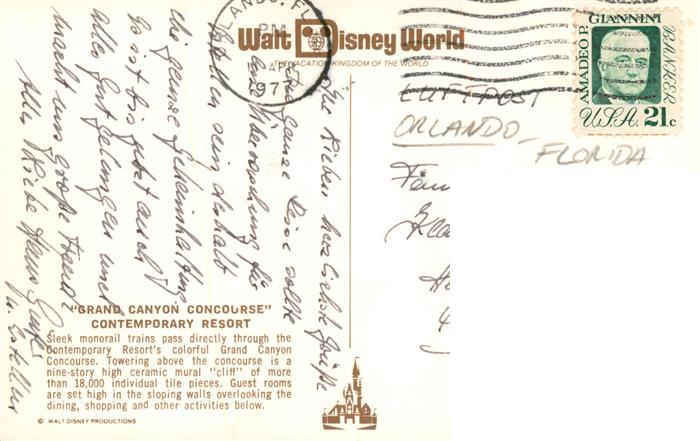 73907355 old postcard Orlando Florida Grand Canyon Concourse Contemporay Resort postalisch gelaufen Erhaltung siehe scans [WerneD78] KatCode: 14140110000000