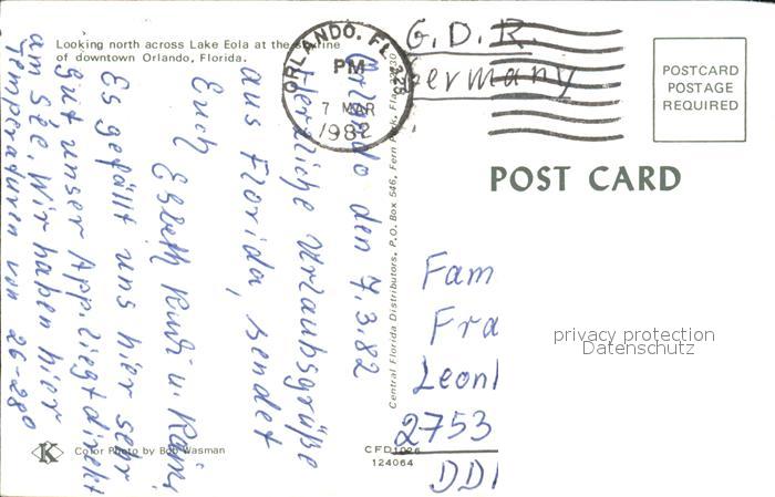 72579342 old postcard Orlando Florida Lake Eola at the skyline of downtown postalisch gelaufen Erhaltung siehe scans [WerneD78] KatCode: 14140110000000
