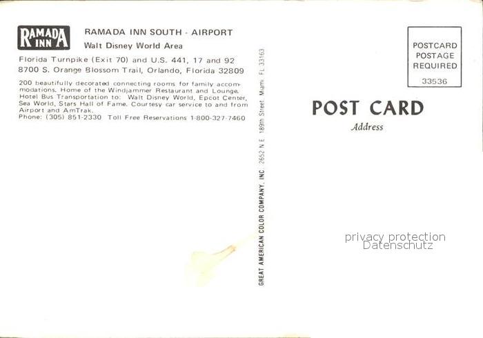 72259292 Orlando Florida Ramada Inn South Airport Swimming Pool Walt Disney World Area postalisch nicht gelaufen Erhaltung siehe scans KatCode: 14140110000000
