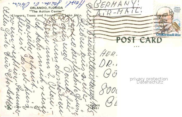 72662224 old postcard Orlando Florida The Action Center Fountain Lake Eola postalisch gelaufen Erhaltung siehe scans [FriedD77] KatCode: 14140110000000
