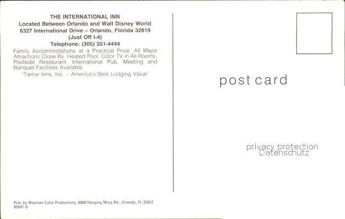 72006280 Orlando Florida The International Inn Hotel postalisch nicht gelaufen Erhaltung siehe scans KatCode: 14140110000000