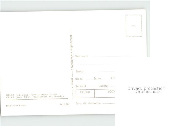 Orlat Sibiu Kopfschmuck der Burschen postalisch nicht gelaufen Erhaltung siehe scans