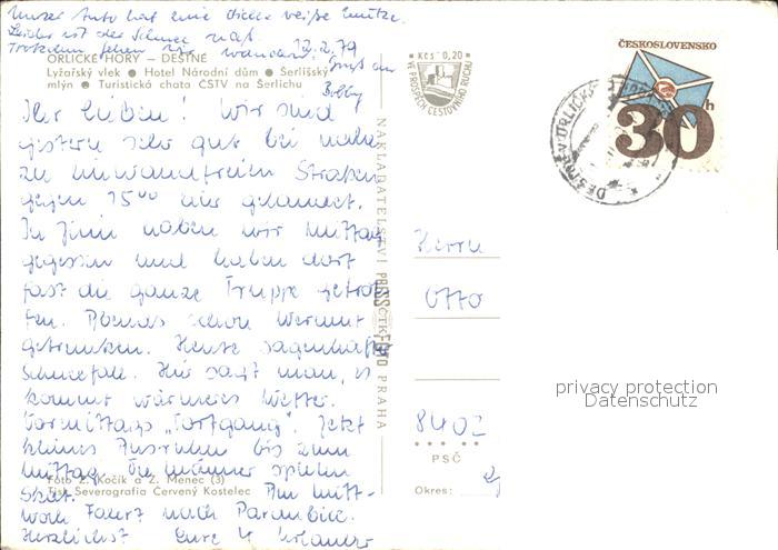 old postcard Orlicke Hory Hotel Narodni dum Serlissky mlyn postalisch gelaufen Erhaltung siehe scans