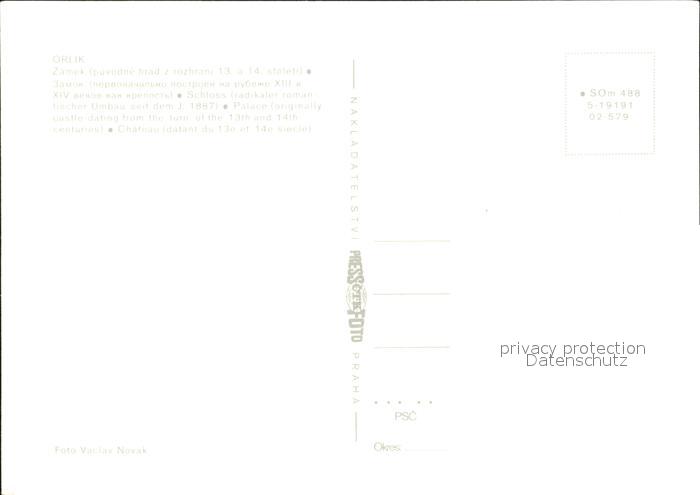 Orlik nad Vltavou Zadek Schloss 14. Jhdt. postalisch nicht gelaufen Erhaltung siehe scans