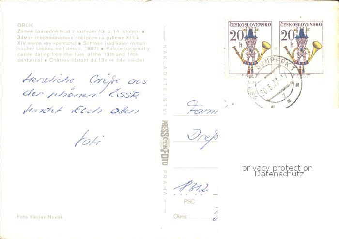 old postcard Orlik nad Vltavou Zamek postalisch gelaufen Erhaltung siehe scans