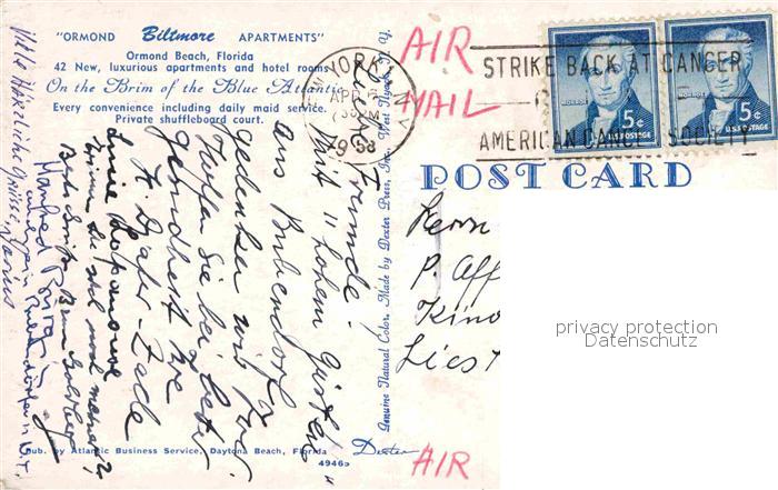 72740747 old postcard Ormond Beach Biltmore Apartments postalisch gelaufen Erhaltung siehe scans [LiesaD40] KatCode: 14140110000000