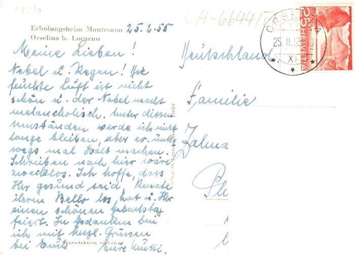 13887590 alte Postkarte Orselina TI Erholungsheim Montesano Fliegeraufnahme postalisch gelaufen Erhaltung siehe scans [FriedD77] KatCode: 11470210655992