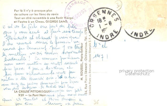 13503524 carte postale Orsennes Br?ckenpartie George Sand postalisch gelaufen Erhaltung siehe scans [LiesaD40] KatCode: 11170036336146