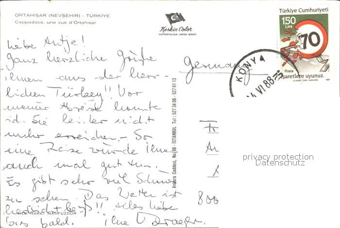 old postcard Ortahisar Cappadoce postalisch gelaufen Erhaltung siehe scans